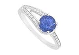 | ✚✚✚ Sapphire and Diamond Engagement Ring : 14K White Gold - 0.75 CT TGW Size 5 A brilliant-cut round blue sapphire is prong-set in the center in 14K white gold. To add a touch of style one side with sassy V motif accented by smaller round diamonds. This lovely engagement ring has a total weight (TGW) of 0.75 carat and also available matching wedding band model no. W3004BW14D.