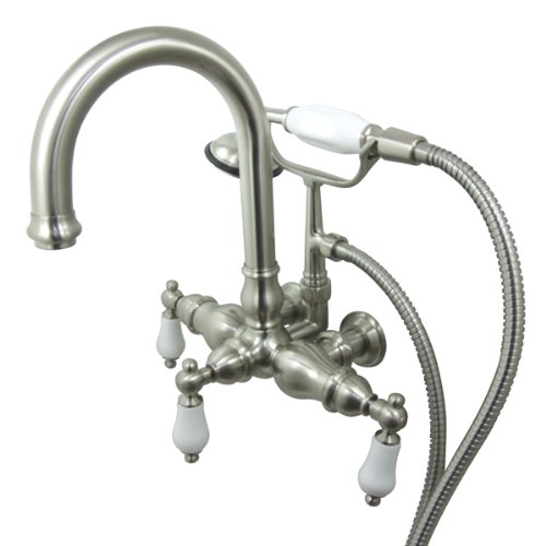 Kingston Brass CC3017T8 Vintage 3-3/8-Inch Center Wall Mount Leg Tub Filler, Satin Nickel