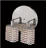 | ✚✚✚ Mini 2 Light Round Canopy Ellipse Wall Sconce in Chrome Crystal Color / Crystal Trim: Crystal (Clear) / Strass Swarovski 1282W-R-E-CL/SS Crystal Color / Crystal Trim: Crystal (Clear) / Strass Swarovski Features: -Wall sconce.-Round canopy. Color/Finish: -Finish: Chrome. Specifications: -Accommodates: 2 x 55 - 110W Max 110V-125V (GU10) bulb. Dimensions: -Hanging weight: 6.-Dimensions: 13.5'' H x 9'' W. Collection: -Mini collection.