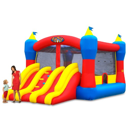 Lead kids to Zone Commercial Magic Combo Bouncer w/ Climbing Ramp & Double Racing Slide, where they can bounce, climb and slide. Made of vinyl, this bouncer can accommodate up to 10 kids at a time. It features netting all around and a snap-shut door for kids to play happily inside. Why You'll Love It: A retractable roof helps protect kids on sunny days and slip covers on slides make it durable. Age: 3 to 10 years Features